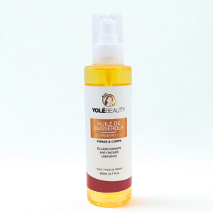 Cette huile de busserole super éclaircissante est un puissant anti-tache, extrêmement riche en arbutine elle élimine toutes les imperfections de votre peau, unifie votre teint, éclaircit de façon naturelle et intense pour une peau radieuse et soyeuse.